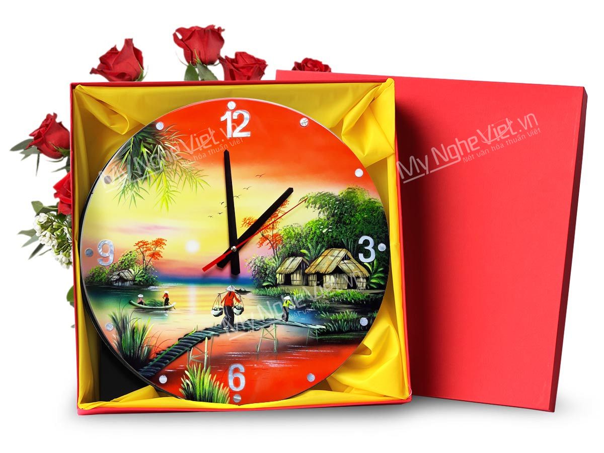 Đồng hồ là vật dụng phổ biến trong mọi căn nhà. Dẫu công nghệ hiện đại có phát triển đến mấy, chiếc đồng hồ kim vẫn giữ được vai trò của mình. Hơn nữa, đồng hồ có nền là tranh sơn mài – 2 trong 1. Vừa như một bức tranh trang trí, vừa là đồng hồ xem giờ. Do đó, quà tặng tranh đồng hồ bằng sơn mài rất được các doanh nghiệp lựa chọn để làm quà tặng.