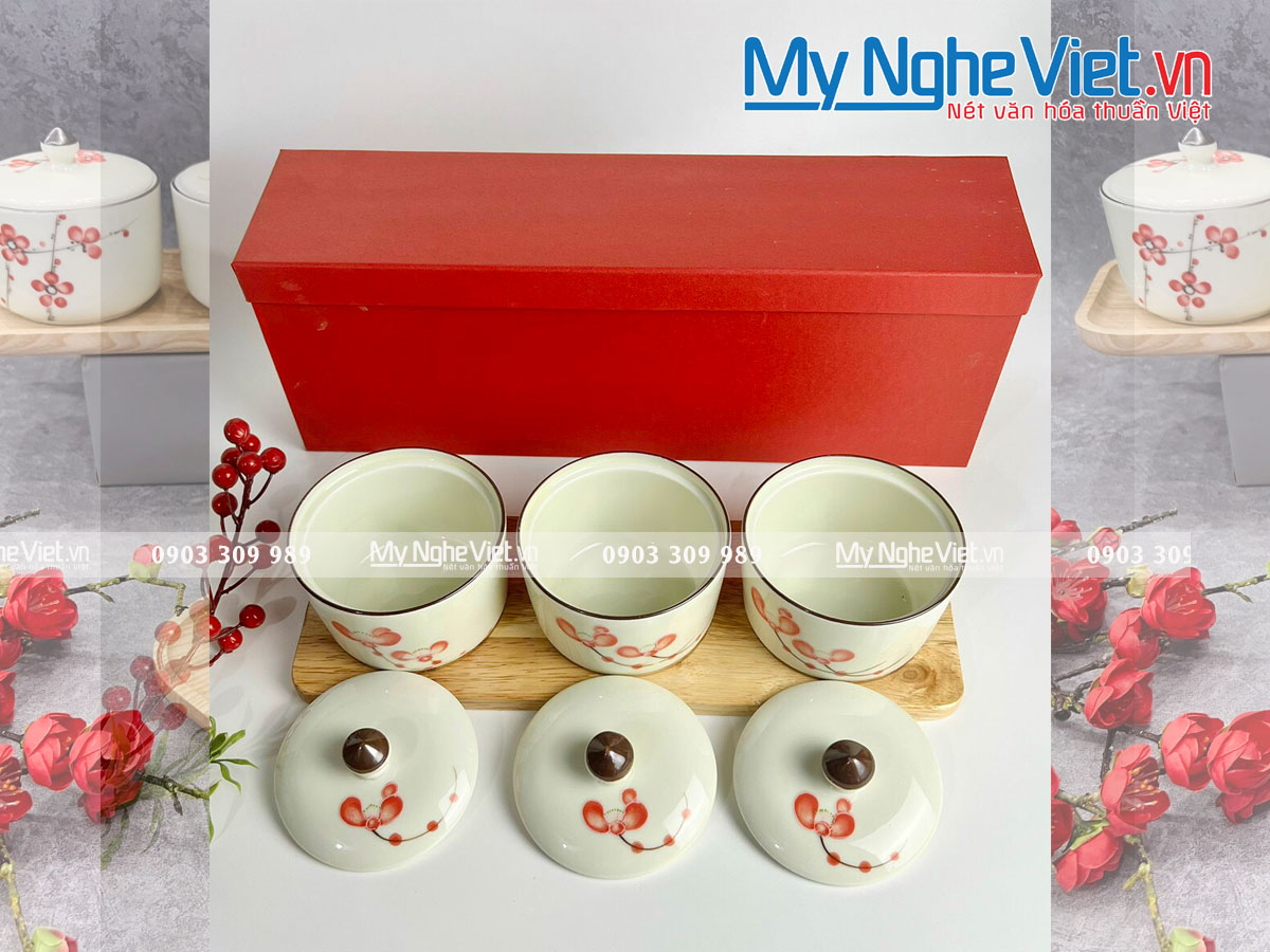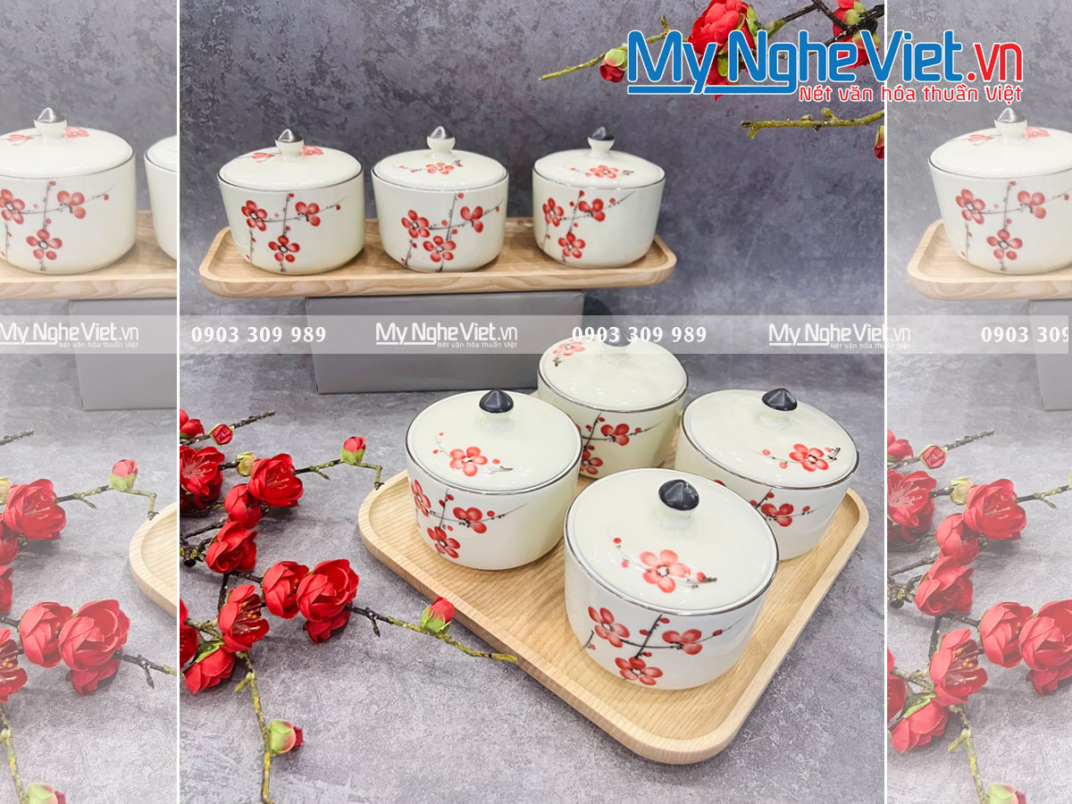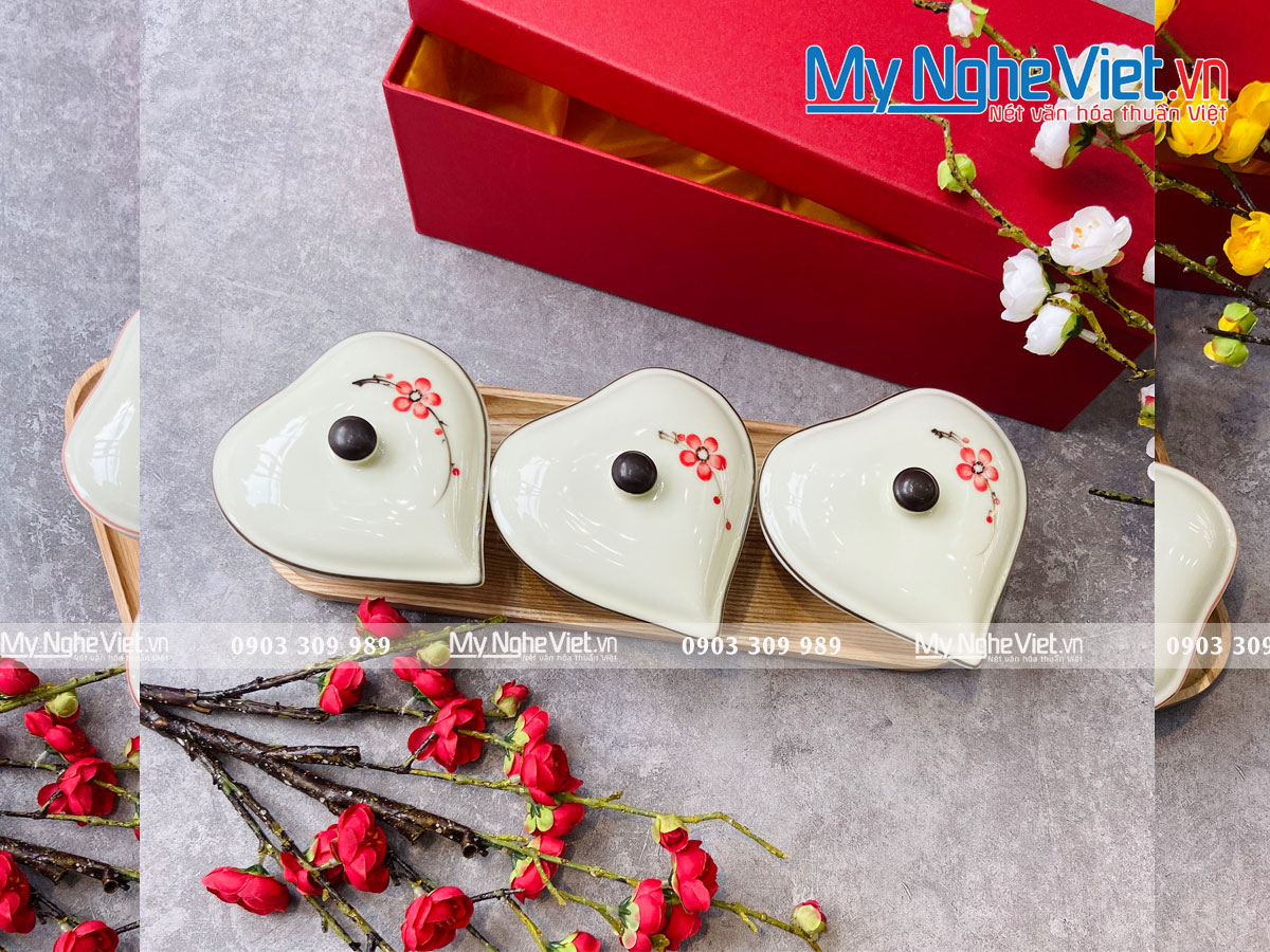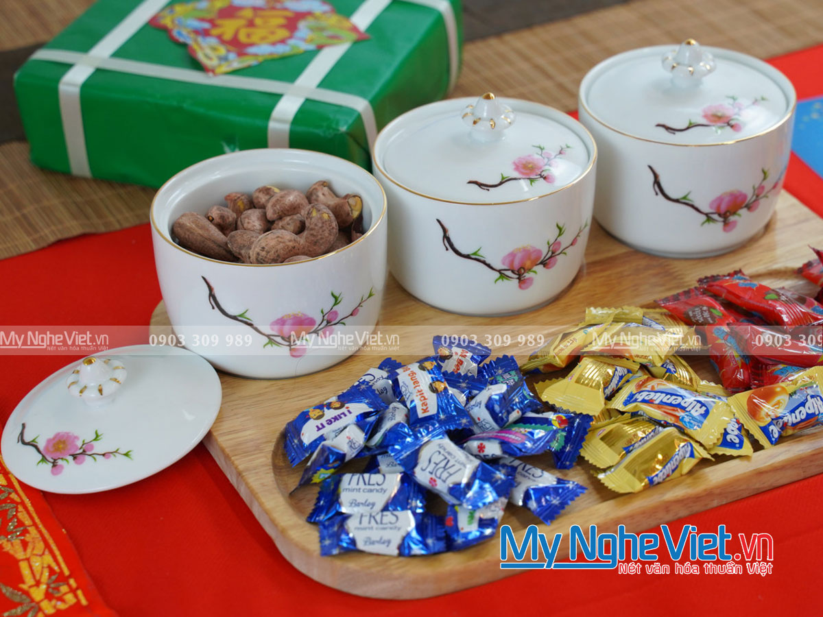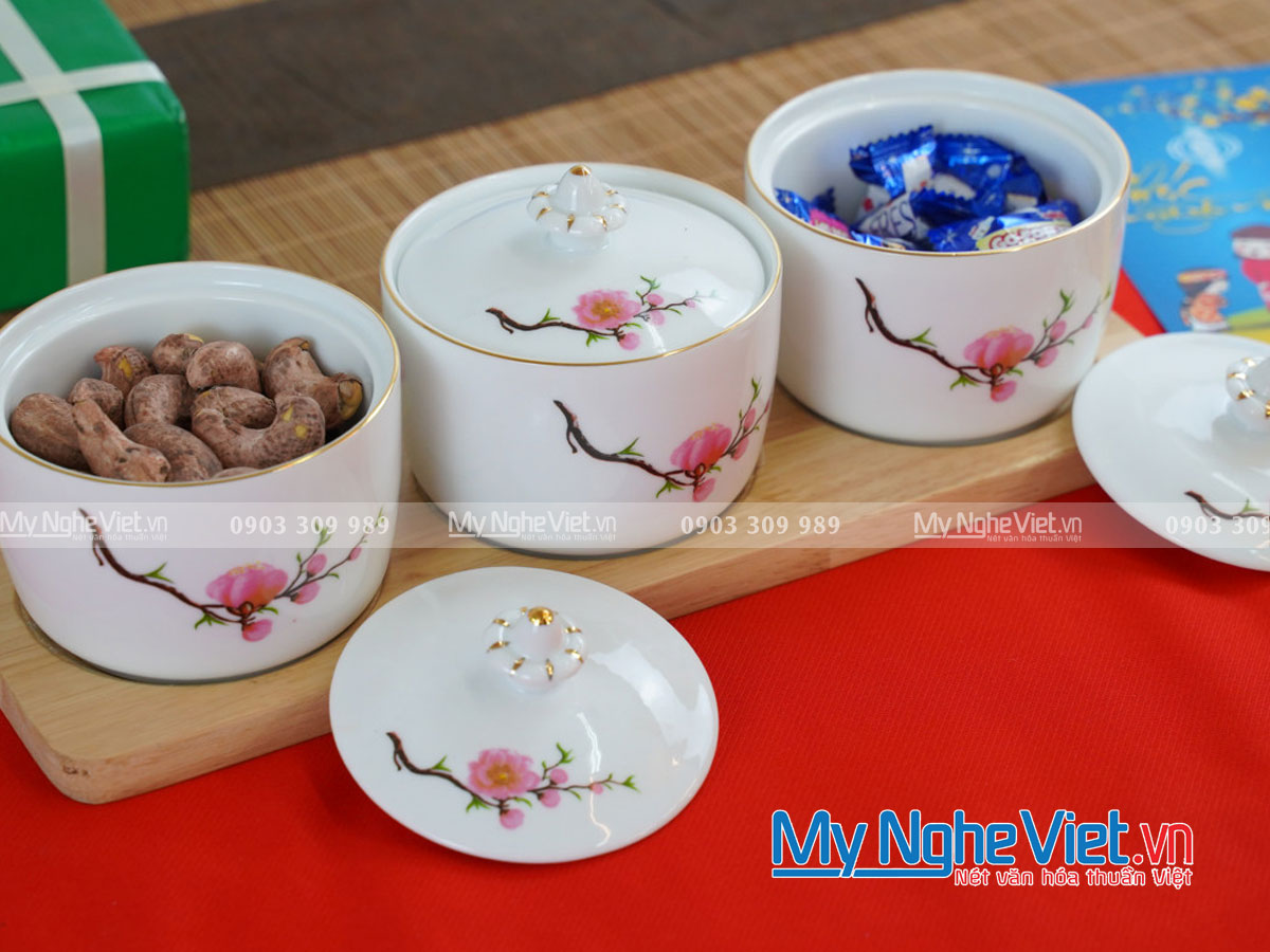 Khay mứt tết đẹp bằng sứ Bát Tràng 2023