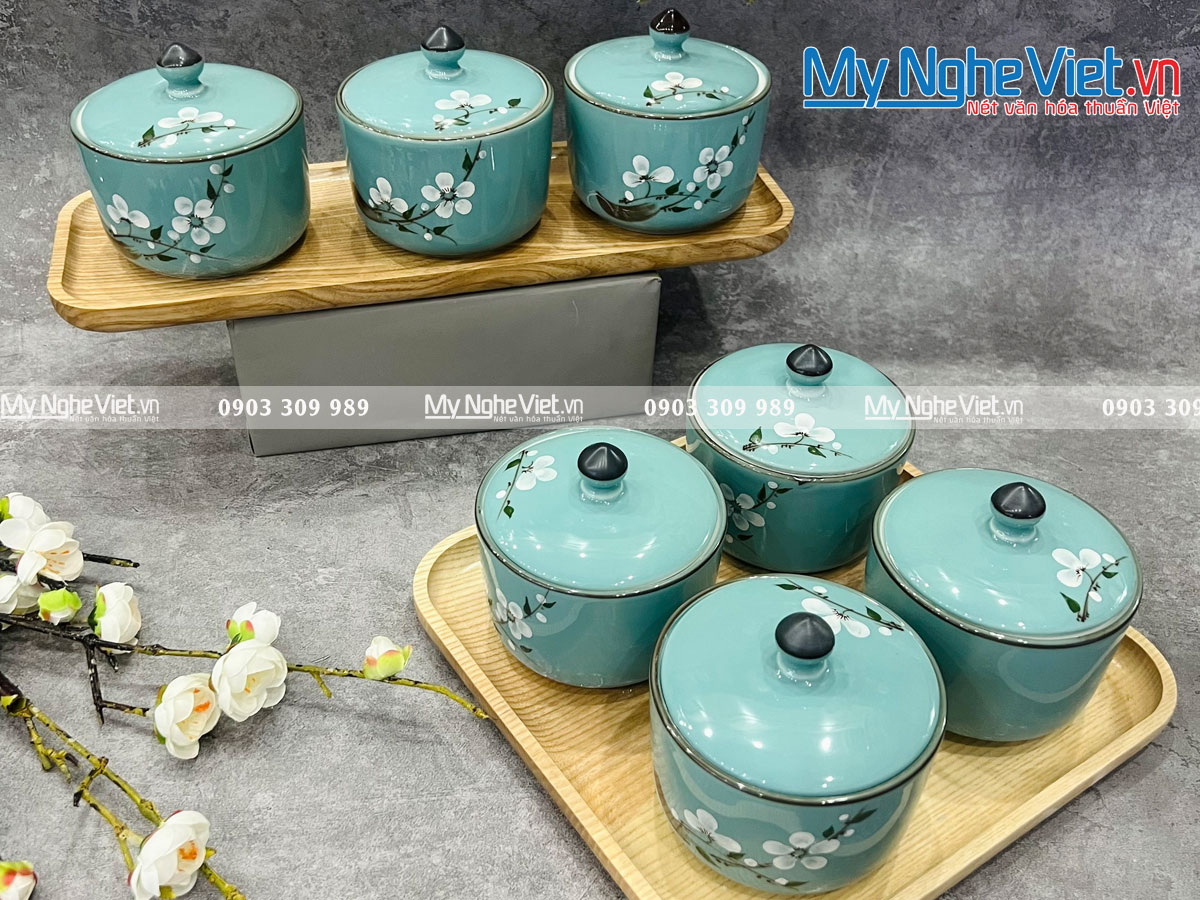Set quà được lựa chọn theo sở thích của Quý Công ty, cùng xem thêm các set 4 hũ, hoa văn có thể thay đổi các mẫu hoa văn khác nhau.