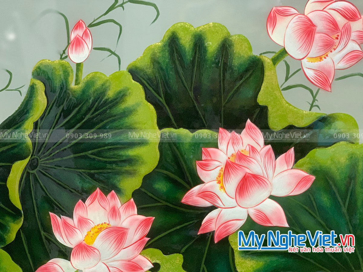 - Màu sắc tươi sáng: Với các lớp sơn mài, hoa sen có màu sắc rực rỡ, tươi sáng, không bị phai màu theo thời gian.